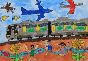 | JR賞 「空とぶ水郡線」 鵜沼 宗市さん 須賀川市立西袋第一小学校 2年 |